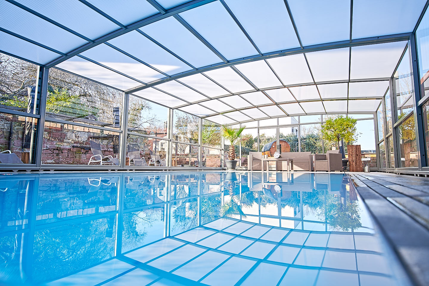 Unser „Casa Vita” bietet Ihnen mit zwei Saunen, einem Dampfbad und unserem neuen Swimming Pool mit Gegenstromanlage und Massagedüsen den perfekten Ort zur Erholung.